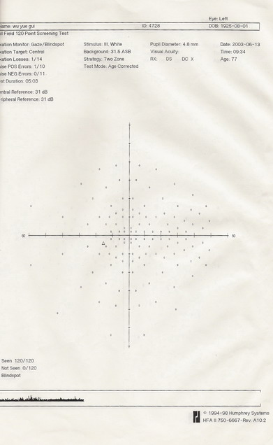2003年11月12日B超:右眼玻璃体轻度混浊,右眼视网膜脱离