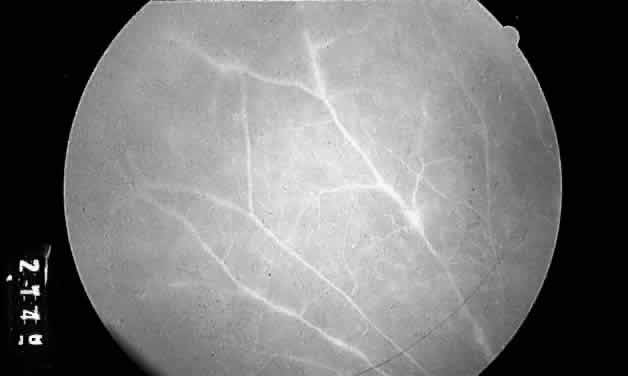 Fig. 4. Fluorescein angiogram demonstrating severe nonperfusion involving the macula. In this case, the macular nonperfusion was responsible for loss of central vision.