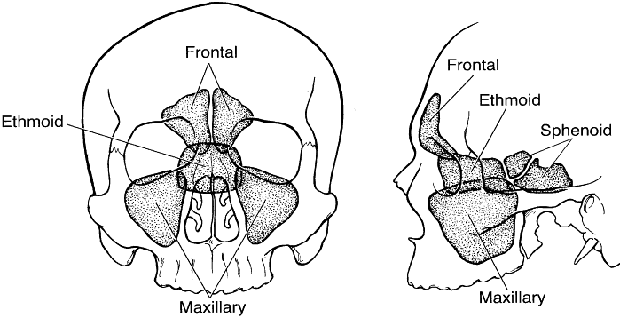 Fig. 3. The paranasal sinuses may not reach full size until age 19 to 20 years. Most orbital cellulitis is due to ethmoid sinusitis.