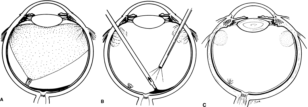 mechanical removal of the vitreous with scissors.1 Kasner proved that the eye could tolerate removal of the vitreous without