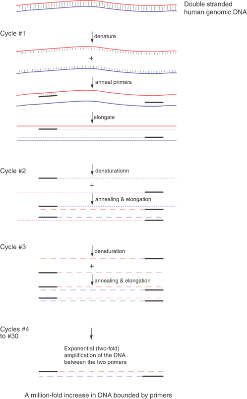 MOLECULAR BIOLOGY Molecular biology is the detailed study in detail of polymers of nucleic acids (DNA and RNA) that encode gene products, largely proteins. It also is the study of the control and regulation of gene expression. “Molecular biology is a discipline, a level of analysis, a kit of tools—which is to say, it is unified by style as much as by content. The style is unmistakable. The style is bold; it is simplifying; it is unsparing; often it is extremely competitive. The style is also, sometimes, subtle and sophisticated.”5 DNA DNA is the fundamental genetic material that encodes genes. In almost all forms of life, DNA is replicated and passed from one generation to the next. Information is stored in DNA by the sequence of the bases in the molecule: adenine (A), guanine (G), cytosine (C), and thymine (T). By convention the sequences from left to right are the 5' to 3' orientation of the sense strand of the DNA molecule, where “5'” is the fifth position on the deoxyribose and the “3'” refers to the third carbon atom of deoxyribose. Information about a gene product is stored in groups of three bases. The genetic code decodes the triplets of bases, translating the DNA sequence through its messenger RNA (mRNA), an RNA copy of the DNA sequence, into an amino acid sequence. The amino acid sequence folds into a three-dimensional structure, forming a protein that is capable of some biologic function. For the most part proteins, rather than DNA or RNA, constitute the physiologic cellular machinery. Recent developments suggest that small RNAs play important roles in metabolism and that small RNAs may be used therapeutically to interfere with the expression of some genes.6 RESTRICTION ENZYMES The discovery of restriction enzymes by microbiologists studying Escherichia coli and other bacteria provided a foundation for modern molecular biology. These enzymes, which are found in a variety of prokaryotes, cut the DNA double helix at specific base sequences, or sites. These sites are short but specific DNA sequences, usually four to eight bases in length. The natural function of a restriction enzyme is to degrade the DNA of invading viruses in order to protect the bacterium from infection. For example, the restriction enzyme EcoRI recognizes the sequence GAATTC in DNA and cleaves the DNA between the G and the first A. Over 500 different restriction enzymes, each recognizing a different DNA sequence, are now commercially available. They usually recognize sequences that are palindromic (reading the same forward and backward). When these enzymes cut the DNA strands in the middle of their recognition sequence, blunt ends are formed. When the strand scissions are offset, overlapping single-stranded ends of two or four bases are created. These “sticky ends” can occur with an overhang of the 3' strand (e.g., as produced by the restriction enzyme, Pst I) or with the 5' strand (e.g., as with EcoRI). Because any sticky ends created by digestion with the same restriction enzyme can reanneal readily under the proper conditions, these enzymes provide a powerful tool for inserting foreign DNA fragments into many vectors or other constructions. This allows virtually all sequences from the human genome to be cloned (inserted into plasmid or bacteriophage vectors and replicated in bacteria), so that large amounts can be isolated in pure form. One way in which a bacterium protects its own DNA from digestion with its own restriction endonuclease is with a methylase that recognizes and adds a methyl group to the given sequence. This sequence, once methylated, is no longer a target for some restriction endonucleases. Other restriction endonucleases are not inhibited by methylation, and these can recognize exactly the same sequences as the homologs that are inhibited. Two restriction enzymes that recognize the same base sequence but are isolated from different organisms are called isoschizomers. Just as isoschizomers may or may not react similarly to methylation, they may not cut the DNA strands at the identical site within the recognition sequence, and thus they may not produce identical ends. Although these differences are of more central concern to cloning and rearranging DNA fragments, they also can be important in gene mapping. For example, the use of a methylation-sensitive restriction endonuclease for analysis of restriction fragment length polymorphisms (RFLPs) might suggest genetic (DNA sequence) polymorphism when none exists. Methylation plays a role in gene expression in higher eukaryotes, and the use of pairs of isoschizomers, one of which is inhibited by methylation, is a means of assessing gene inactivation. Usually a gene that is not expressed in a given tissue is methylated, whereas the same gene is not methylated in a tissue where the gene's expression is needed. RECOMBINANT TECHNOLOGY Recombinant DNA technology is the set of techniques and tools used by molecular biologists to manipulate DNA molecules. Recombinant DNA technology allows the preparation of large amounts of a pure and homogeneous DNA sequence. Figure 1 illustrates the fundamentals of the technology with a procedure called subcloning. This procedure begins with a DNA sequence of interest, for example, part of a gene or cDNA that will be “inserted” into a second, usually larger, piece of DNA, called a “vector,” which is used to propagate the gene fragment. Vectors usually are derived from bacterial viruses (bacteriophages) or bacterial plasmids, small double-stranded DNA circles commonly found in bacteria that replicate autonomously from the bacterial DNA. The vectors usually have been manipulated to delete parts of the parental plasmid or virus and frequently have had other genes added to them depending on their specific application. To subclone the gene fragment into a different vector, some sequence information or knowledge of the positions of restriction enzyme recognition sites is required. The sequences of 