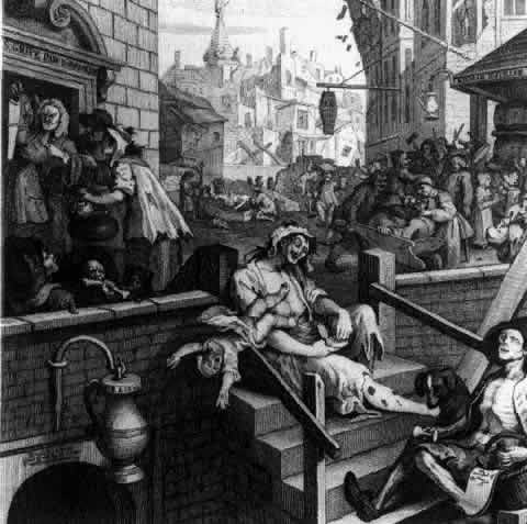 morphology or subsequent function in the postnatal period.2 It also can be defined by its ability to produce a congenital defect. Teratology requires a multiple disciplinary approach, including epidemiology, pediatrics, genetics, obstetrics, toxicology, ophthalmology, cardiology, dentistry, biochemistry, and many others. Politicians, lawyers, unions, and the lay public also have become interested in congenital malformations. Teratology is the study of “teras.” The word teras is derived from ancient Greek mythology and means a prodigy, a wonder, something that is beyond normal. A teras could be a divinely beautiful creature or an ugly monster. There are many teras in ancient mythology--the sphinx, the mermaid, and Minotaur-all of which combine animal and human characteristics. Frankenstein, King Kong, Superman, and imagined creatures from other planets are the teras of today. Throughout history, malformations of the eyes have been especially fascinating to people. In Babylonian clay tablets from as early as 4,000 years ago, monsters with one eye on the forehead or with eyes on the neck, back, and anus were portrayed. The cyclops is another example of the fascination with eye malformations. Homer tells about Ulysses, who came to the island of the cyclops and had to fight the evil single-eyed giant, who was trying to kill and eat his men. Since ancient time, it was believed that the mammalian fetus developed in the shielded environment of the maternal uterus and that external factors could not significantly influence development. There existed, however, some concern that various agents could be hazardous to the child. The adverse effects on the offspring due to maternal abuse of alcohol during pregnancy have been known for thousands of years. The Bible (Judges 13:7) warns the pregnant woman against eating “unclean things” and drinking “strong drink” to produce a perfect offspring. In the middle of the 18th century, the famous painter William Hogarth described the disadvantage of drinking excessive amounts of gin in his painting entitled Gin Lane (Fig. 1). Approximately 1 century later, Charles Dickens made the following comments in his Pick-wick Papers: “Betsy Martin, widow, one child, and one eye. Goes out chafing and washing, by the day; never had more than one eye, but knows her mother drank bottled stout, and shouldn't wonder if that caused it .… Thinks it not impossible that if she had always abstained from spirits, she might have had two eyes by this time.”3 A wide and amusing exposé on teratology of the past was given by Warkany.4