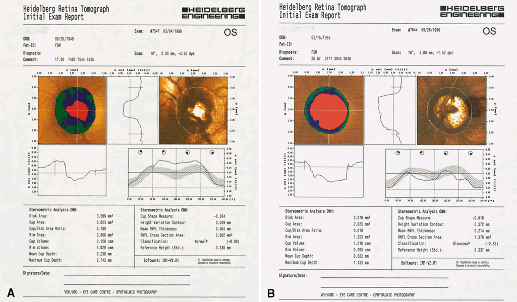 ability to detect change. There have not been any prospective series reported of patients with confirmed progression of glaucoma who have had documented optic nerve change on cSLO. Indeed, it is not clear what represents clinically significant change, although it is possible to define statistical change. This remains an important area for development of software and analysis strategies. Several investigators have used models of change such as pre- and post-trabeculectomy and animal models.31–33 These results suggest that it will be possible to detect subtle topographic change from disease process. There remains the problem of confirming such change when other standard tests may be far less sensitive. Prospective longitudinal studies will be needed to answer these questions. |